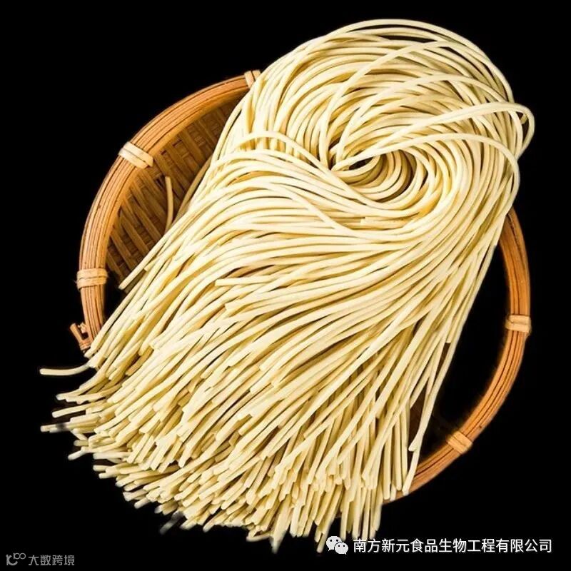 4.在面条中,由于复合木聚糖酶能够水解木聚糖,增加非淀粉多糖的水溶性,可以释放出大量结合水,提供给淀粉和面筋,使面团形成更好的面筋网络结构,提高面团的机械加工性,改善其品质。