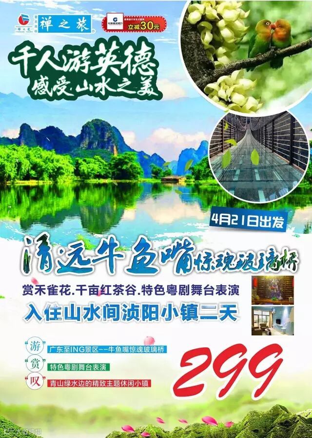 清远牛鱼嘴惊魂玻璃桥、赏禾雀花、
