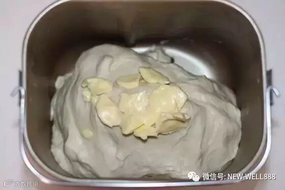 5.启动揉面程序, 等软化的黄油慢慢吸收至面团后,面团就会变得光滑。不粘手。