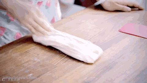 ✦ 1.加水时水温不能过高,面粉成团了以后,可以用边摔打边休息的方式制作,直到表面光洁为止。