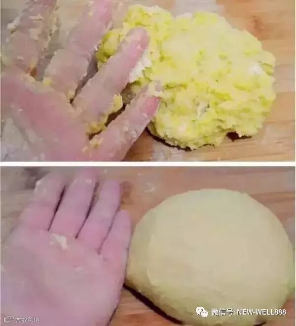 ✦3.揉搓和静置结合。如果面团粘得实在太紧,可以试着将面团静置5分钟,让面粉充分吸收水分,然后再揉搓。面团起筋之后,就不怎么粘手了。