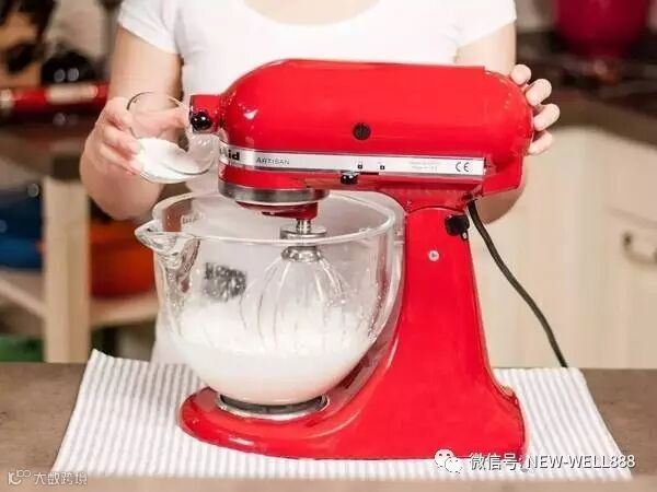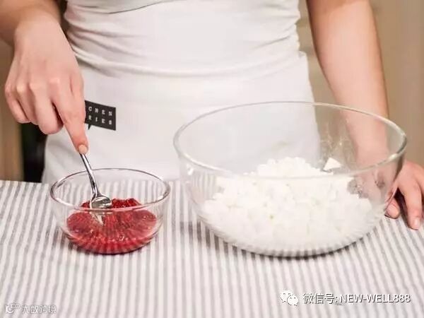①将奶油打发至硬性发泡,最后加入过筛的糖份,拌匀。