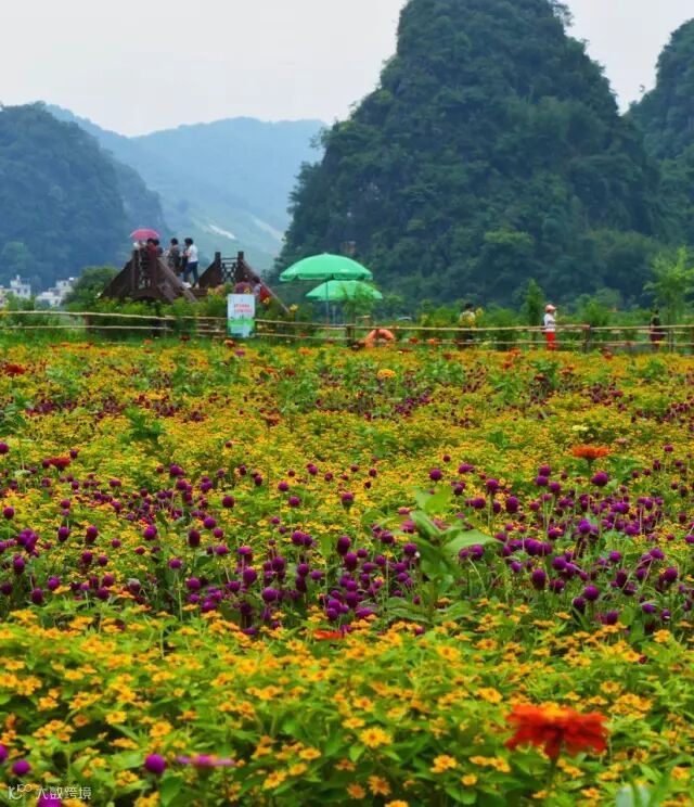峰林莲湖旁,有一大片绽放的七彩花海,正值赏花时!
