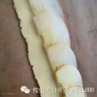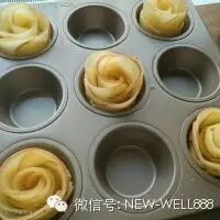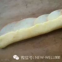 9. 取一份揉成条状擀平然后排上7~8片苹果片。