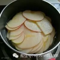 5. 用筷子夹起苹果片,苹果已经变软即可。沥干水备用。