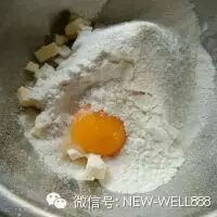 6. 黄油,蛋黄,糖粉和低筋面粉混合。