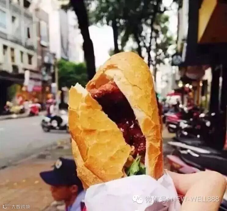BÁNH MÌ是越南语,直译为“面包”,是一款具有法式越南风情的三文治,可以说是法国殖民的产物。虽然内容物大不同,从最初只有黄油、火腿和肉酱或肝酱,到现在更为丰富,增加了蛋黄酱、烤肉或冻肉、青瓜、香菜、腌菜和辣椒,但有一样东西由始至终未曾改变,那么就是外层的法棍。