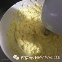 3. 软化好的黄油加细砂糖,用电动打蛋器打至蓬松发白,具体时间看黄油搅打程度而定