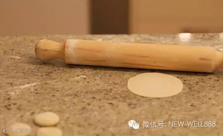 把每个剂子整一下形状,然后用手掌压成棋子状,这就是面皮的毛坯。用擀面杖把这毛坯擀成直径10-12厘米的圆皮,擀的时候尽量让中间厚一点,边缘部分薄一些。