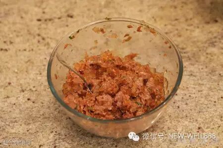 把猪肉糜倒入一个大碗里面,撒入切成碎末的生姜(最方便的办法是用一个比较细的擦丝器,直接就可以把生姜擦成泥,不过擦的时候注意不要伤到手),然后放入切碎的小葱,生抽,老抽,麻油,糖,胡椒粉,搅拌均匀,最后放入切成细丁的猪皮冻,用力搅拌,搅拌的过程中必须向同一方向,这样可以让肉糜中的纤维纠结在一起,使得小笼包的馅料更有弹性。搅拌好的馅料蒙上保鲜膜,放在冰箱里冷藏4个小时,或者过夜。