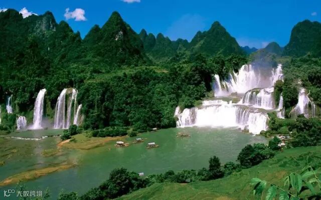 德天瀑布景观横跨中国、越南两个国家,是亚洲第一大的跨国瀑布(瀑布宽200余米,与越南板约瀑布相连)。