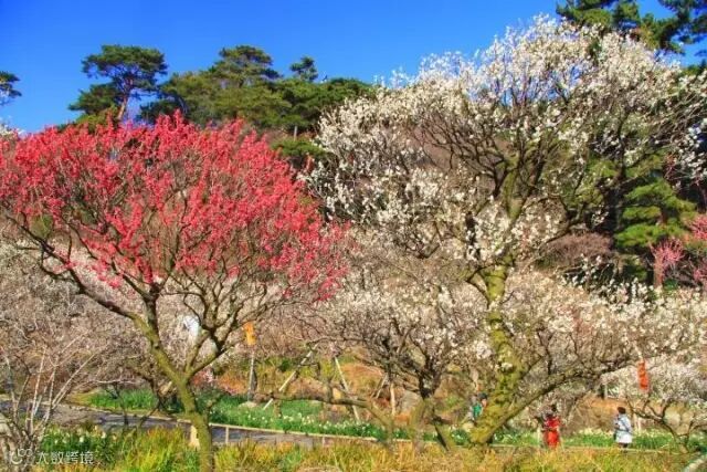 此处有着730株梅树,从12月初开始到3月为止形形色色的梅花持续绽放。