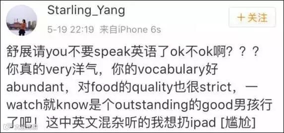 此时,又需要拿出钱钟书在《围城》里的那段话了,“说话里嵌的英文字,还比不得嘴里嵌的金牙,因为金牙不仅妆点,尚可使用。而英文字只好比牙缝里嵌的肉屑,除了表示饭菜吃得好,此外全无用处。”