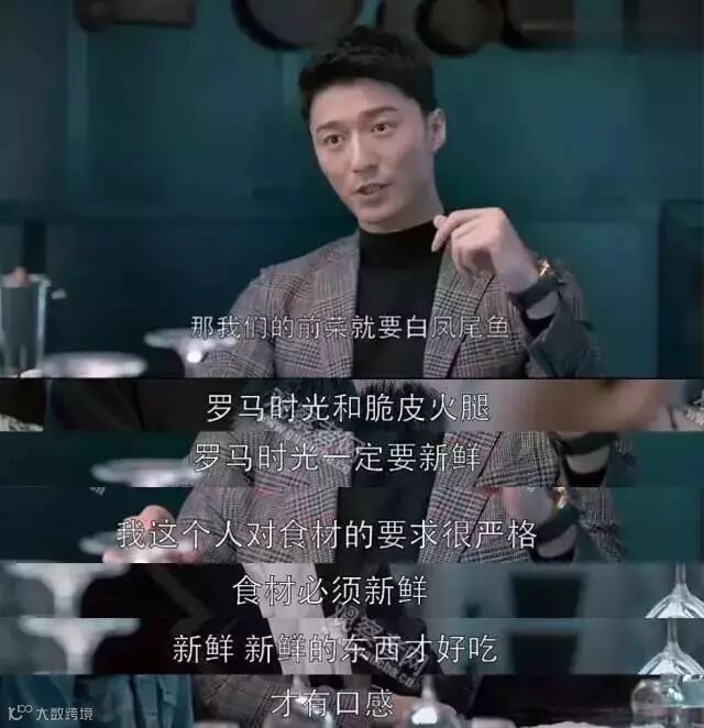 “我们的前菜就要White anchovies,Roma horse (hours)and crispy ham!”然后还向waiter 强调,“Roma horse一定要flash(fresh……),我个人对食材的要求很严格,食材必须flash。”