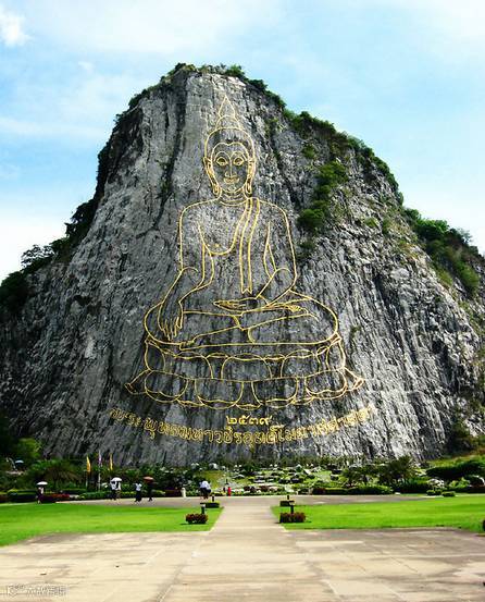 七珍佛山是为了庆祝泰皇登基50周年纪念,特别用雷射雕刻一座释迦牟尼佛的神像,此为芭达雅最大的释迦牟尼佛雕像,共用18吨重的24K金雕塑而成,此山中亦挖掘出许多的古佛像