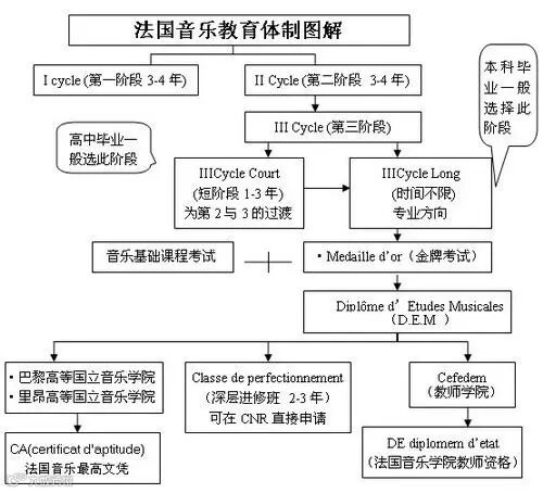 法国的音乐教育体制基本分为三个阶段: