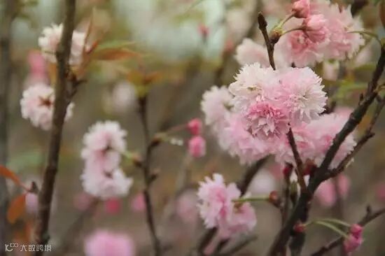 花儿粉嫩、重重叠叠,影影绰绰。如有微风轻抚,朵朵粉色花瓣飘飘散散,实在是浪漫两字的最好诠释。