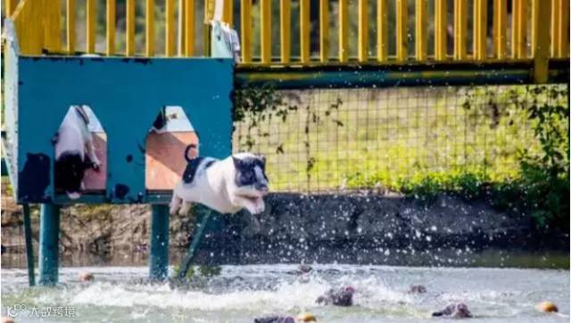 别看“二师兄”平时散漫,上起班来绝对不含糊。可爱的小猪跳水身受欢迎,逗趣的饲养员增添了项目的乐趣,每只可爱的小猪“噗通”的跳下水,让人忍俊不禁。