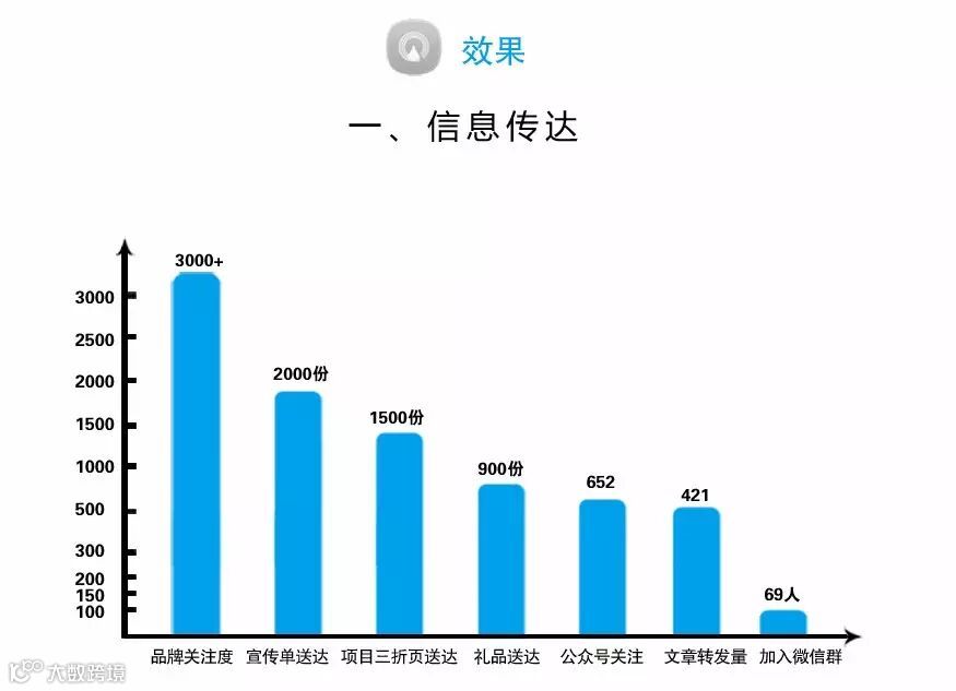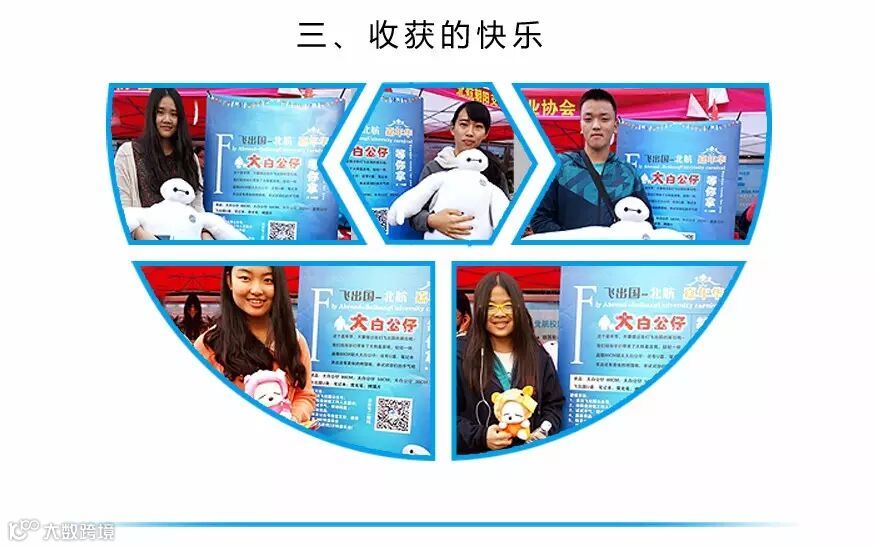 根据历届嘉年华统计数据及当日现场学生流动情况,本次活动受关注度达到3000人以上,之前的宣传单页派发数2000份,现场三折页发送1500份,准备的所有礼品均在嘉年华结束之前半小时全部派发完毕,现场公主号加关注达652人,分享朋友圈转发数高达421次,飞出国游乐园微信群69人加人。