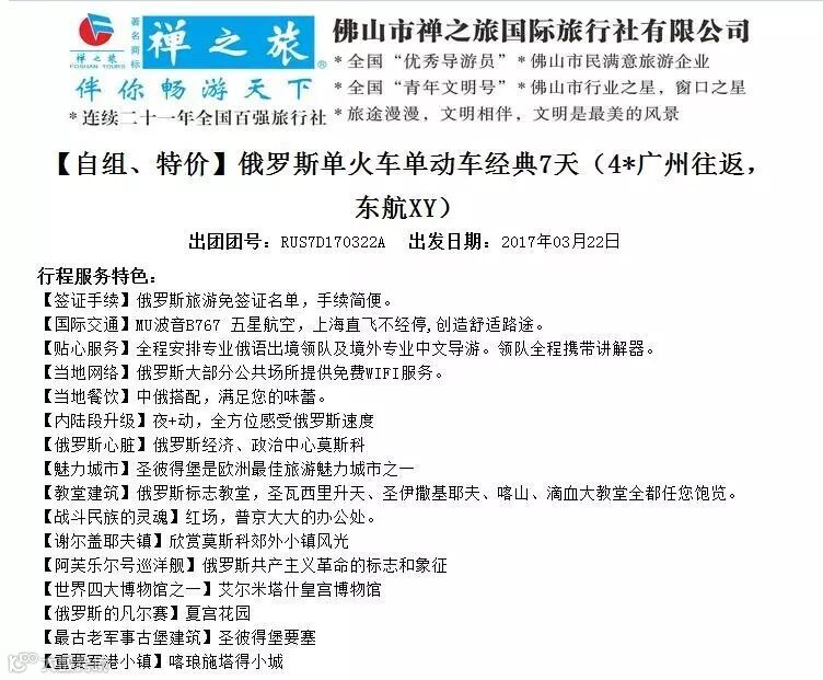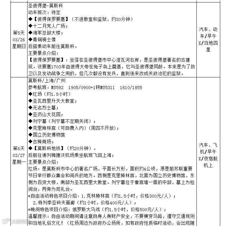 【贴心服务】全程安排专业俄语出境领队及境外专业中文导游。领队全程携带讲解器。