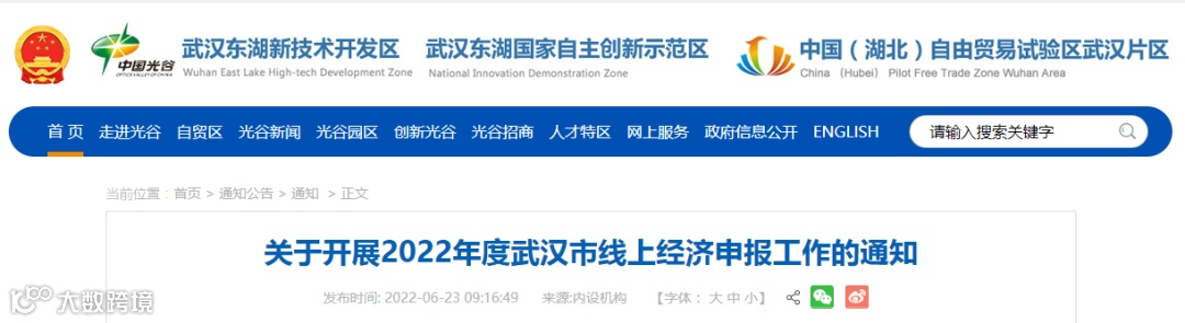 关于开展2022年度武汉市线上经济申报工作的通知 |