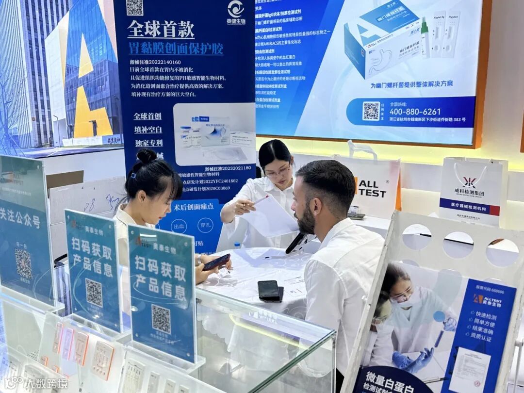 展会上,奥泰生物幽门螺旋杆菌抗原检测试剂盒(乳胶法)得到客户的青睐。在毒检系列产品中,新型精神活性物质检测产品依旧是热点,特别是近期热门产品依托咪酯检测试剂盒及依托咪酯毛发检测试剂盒,吸引了众多客户的关注,现场咨询源源不断,不时有国内外客户前来交流分享。