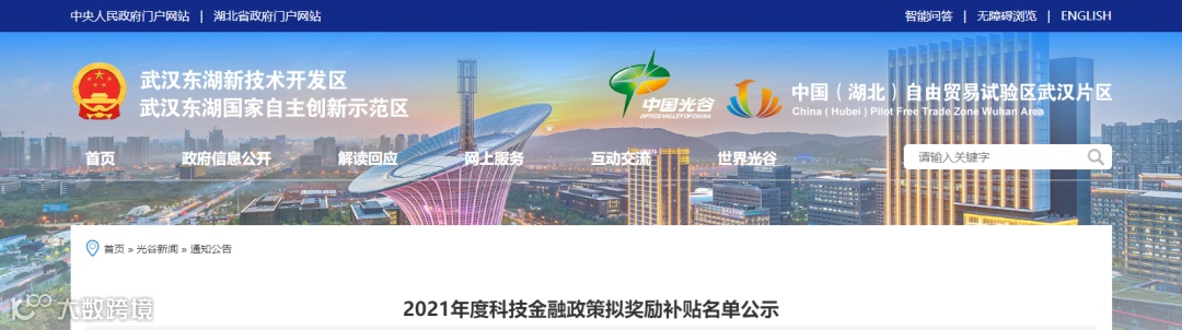 根据《武汉东湖新技术开发区关于加快科技金融产业高质量发展的若干措施》(武新管【2019】15号)文件规定,我们拟对2021年度符合科技金融奖励补贴政策的企业予以政策兑现。