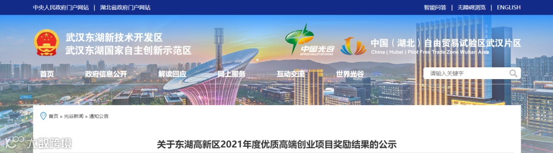 关于东湖高新区2021年度优质高端创业项目奖励结果的公示