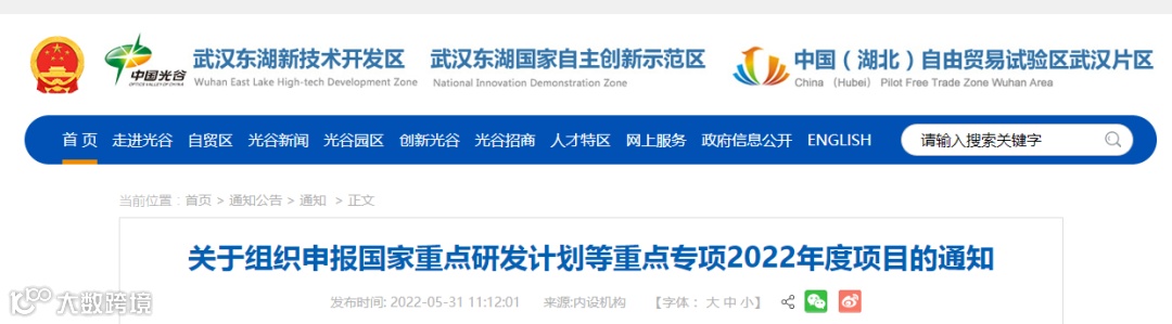 关于组织申报国家重点研发计划等重点专项2022年度项目的通知 |