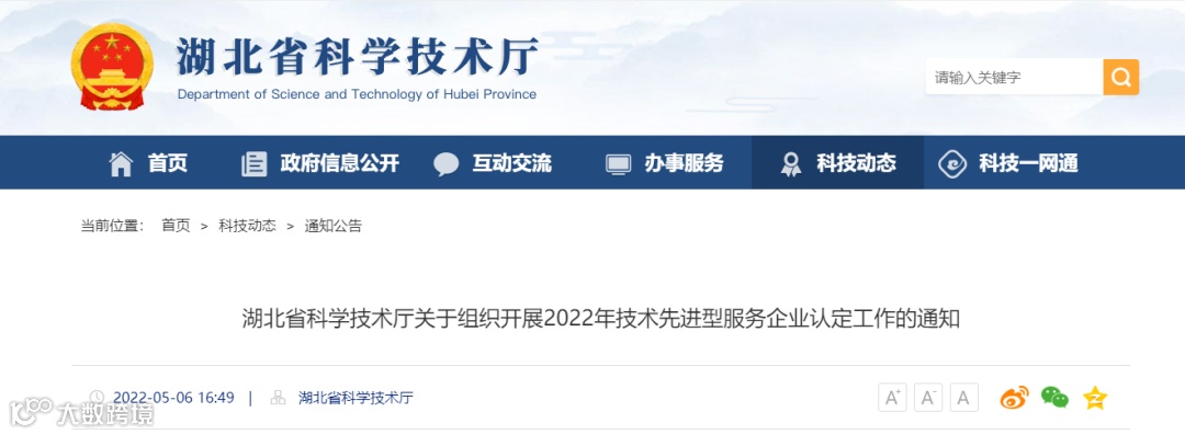 湖北省科学技术厅关于组织开展2022年技术先进型服务企业认定工作的通知