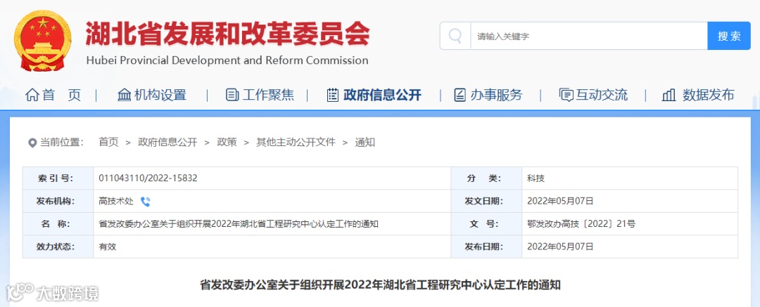 省发改委办公室关于组织开展2022年湖北省工程研究中心认定工作的通知 |