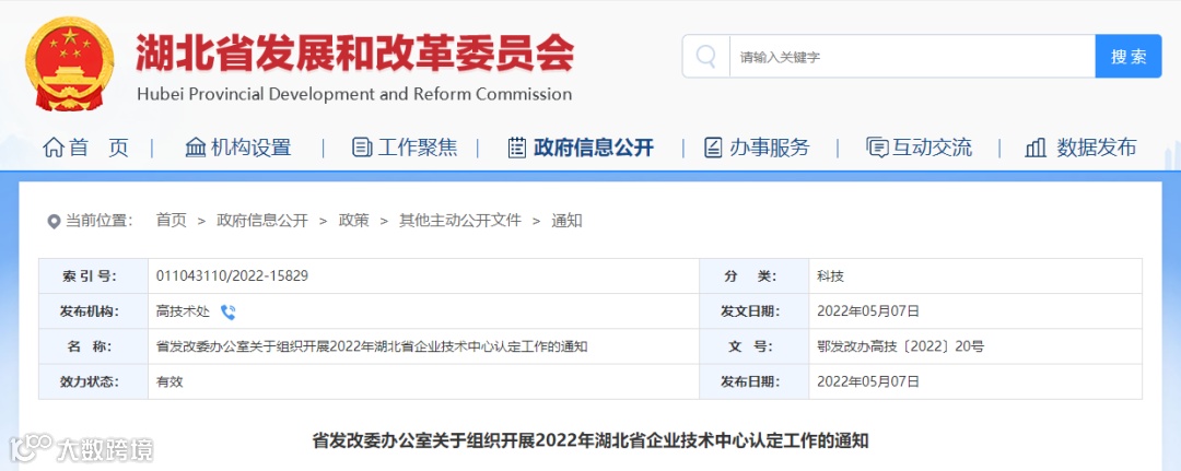 省发改委办公室关于组织开展2022年湖北省企业技术中心认定工作的通知 |