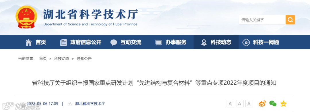 省科技厅关于组织申报国家重点研发计划“先进结构与复合材料”等重点专项2022年度项目的通知 |