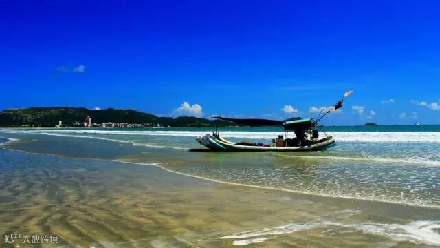 巽寮湾的清晨,蓝天、阳光、沙滩、海浪相互应和着,唯有洁白细幼如白金的沙滩是可触及的。