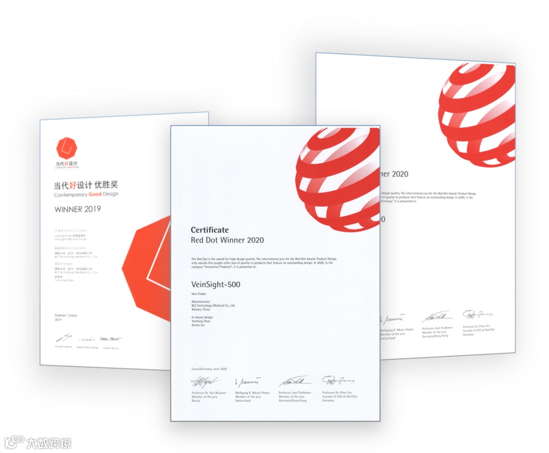据悉,红点奖是世界三大设计奖之一,一直有“设计界的奥斯卡”的美誉,是全球工业设计和发展趋势的风向标。据已知信息,近三年的湖北省医疗行业中,博联众科是第二家获得德国红点奖的医疗器械制造商。此次博联众科VeinSight-500血管显像仪产品获得的“创新产品奖”为今年首次增设的奖项,范围覆盖所有产业报名作品,获奖率仅为1.45%。