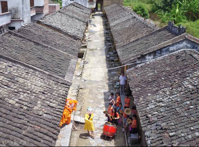 虎尾村有一项代代坚守的传统,那就是舞狮。群山围绕的虎尾村里,孩子们常常结伴玩耍,“叮叮咚咚”的鼓点声下,小男孩小女孩举着狮头,顶着狮尾,似模似样地随着鼓点节奏上扬下扑,左闪右避,活灵活现。