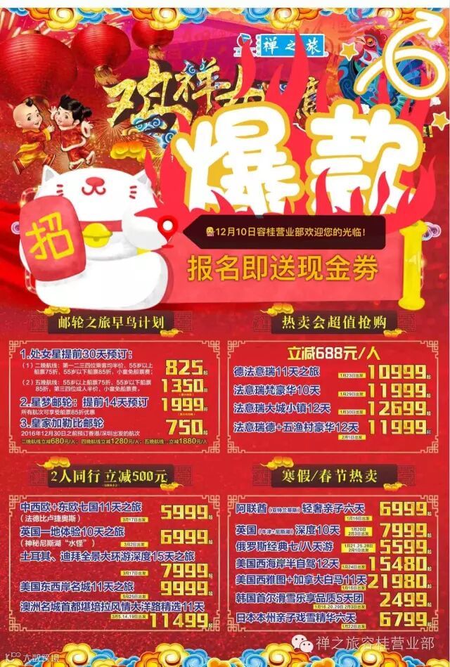 【优惠五】由容桂营业部赠送优惠——报名春节海外游的,除当天线路的优惠外,达到指定金额再加送旅游现金券!