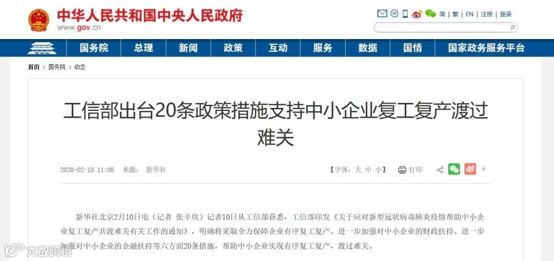 上述一系列政策指向明确发力精准,对于支持企业复工复产、帮助小微企业渡过难关具有重要意义。