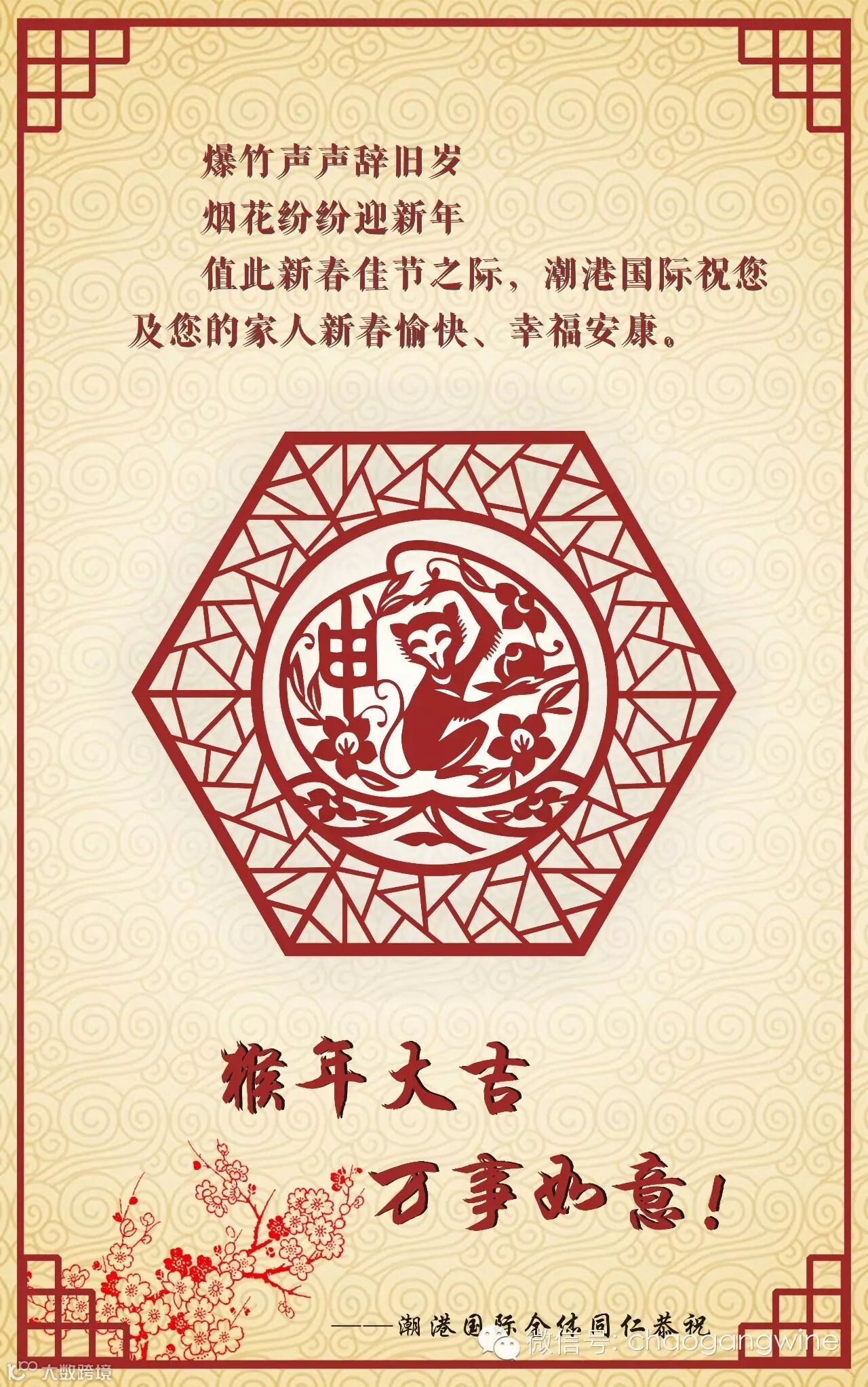 导读:爆竹声声辞旧岁,烟花纷纷迎新年。值此新春佳节之际,潮港国际祝您及您的家人新春愉快、幸福安康!猴年一帆风顺、万事大吉!