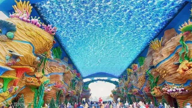 大街雨旁的立体珊瑚和礁石场景五彩缤纷,尽情展现海底世界令人叹为观止的一面。