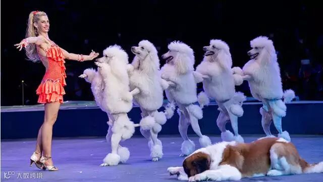 憨萌的圣伯纳犬和机灵的贵妇狗联袂献艺,跳跃旋转,飞奔转圈,堪称动物界的大明星。一幕令人捧腹的狗狗欢乐嘉年华精彩上演。