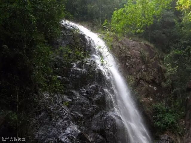 观看川龙瀑布,一注山泉从一个形似龙头的石洞中穿出,飞流直下深潭,声如钟鸣,水雾四溅,蔚为壮观。