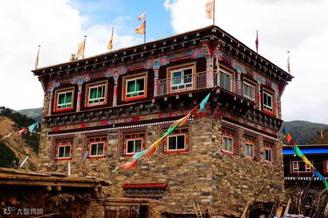 色尔坝的藏寨风格完全拟人化,犹如一个头戴盔甲、身披战袍的将军,高大伟岸,充满了神秘的色彩。