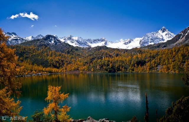木格措又名野人海,这里的秋日美景就像一幅让人驻足观看的画卷,微风拂过,吹动着了一池湖水,泛起一圈圈的涟漪,显得木格措更是充满了灵动的生机,各色的植被交织在一起,美的让人流连忘返。