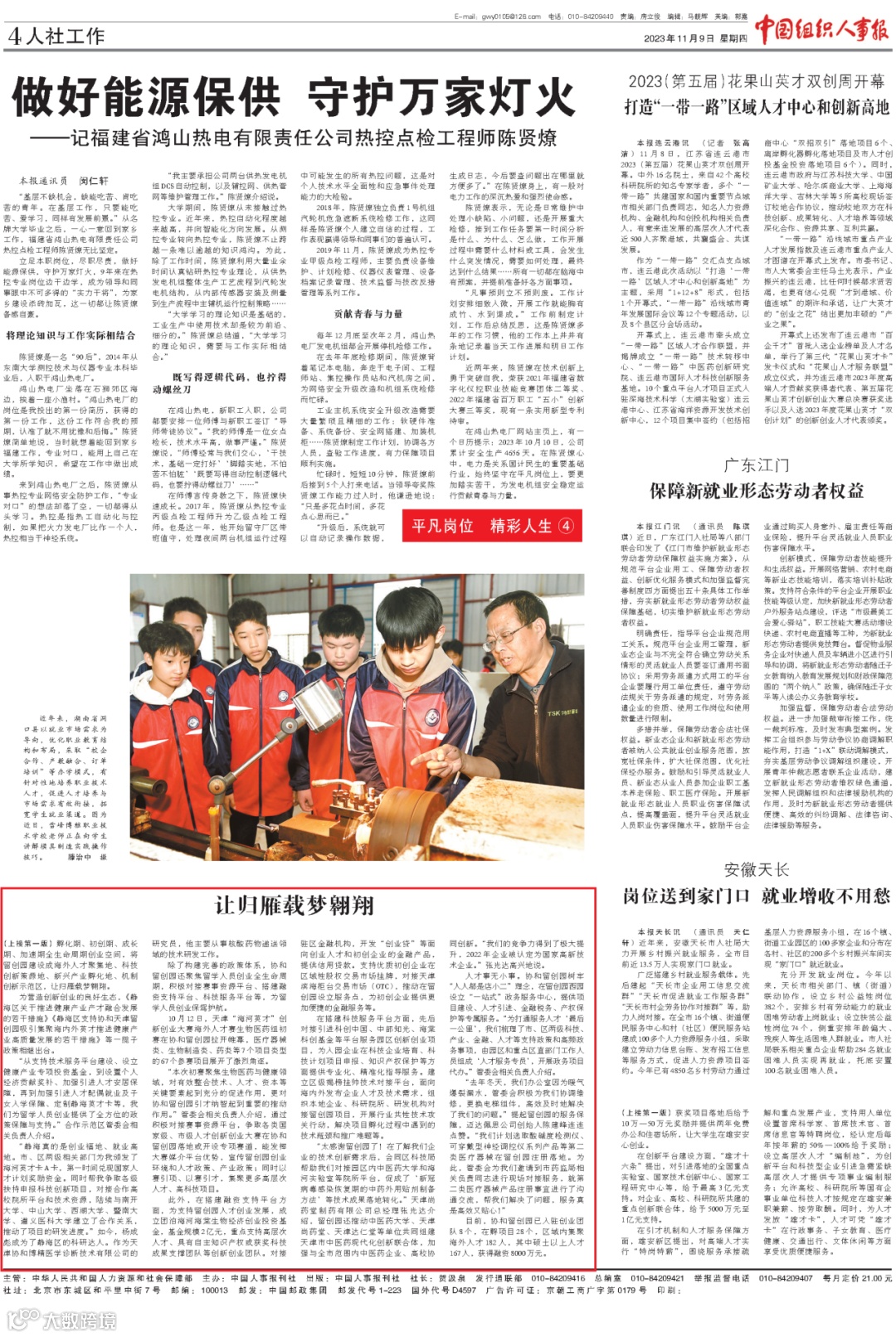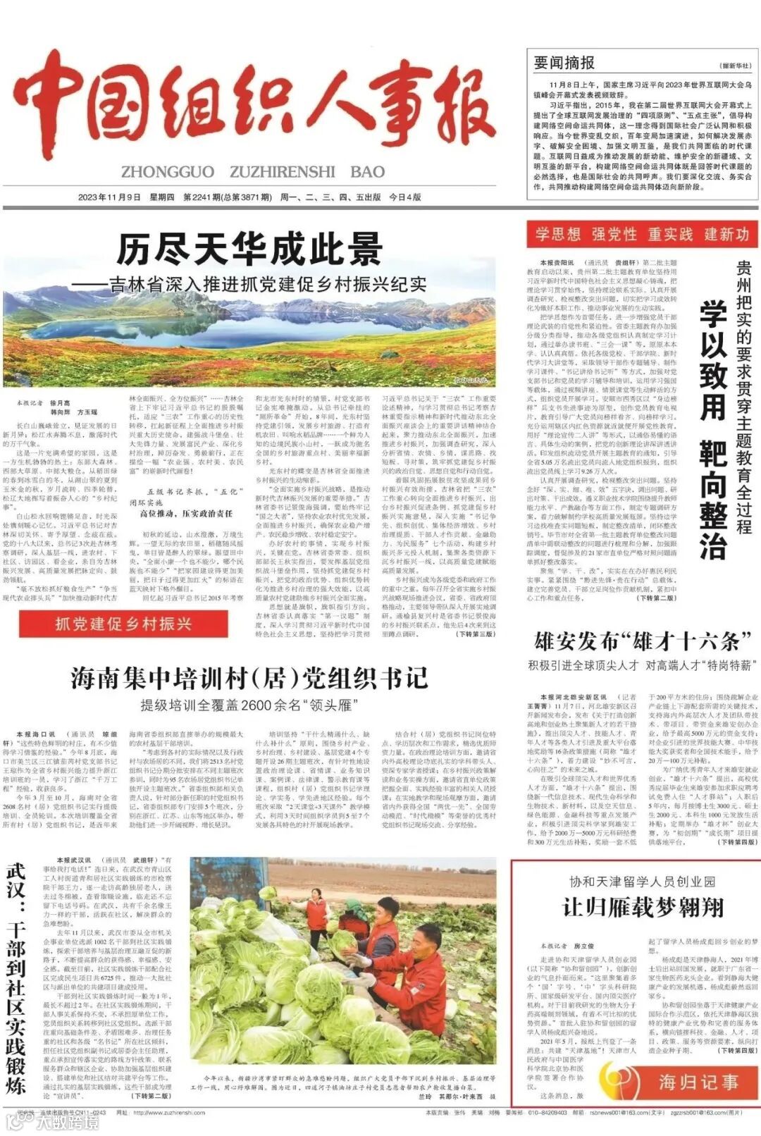 《中国组织人事报》于2023年10月23日开设“海归记事”栏目,宣传报道留学人员回国创业就业工作取得的成效,展现近年来留学人员回国就业创业的风采。