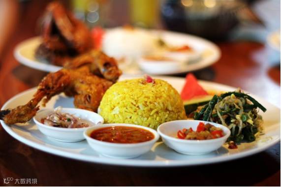 全巴厘岛以乌布的脏鸭餐最出名,因为这里被大片大片的稻田环绕,水质好,鱼虫多,鸭子长得肥美。脏鸭餐是好几种小菜搭配的套餐,放在翠绿的芭蕉叶上,颜色就让人食欲大增。