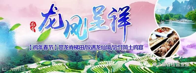新春佳节【主推龙凤呈祥—人气超值零自费】桂林龙脊梯田放水美景、壮寨竹筒土鸡宴、阳朔聚龙潭、天籁蝴蝶泉、遇龙河鸬鹚表演、浪漫西街动车三天