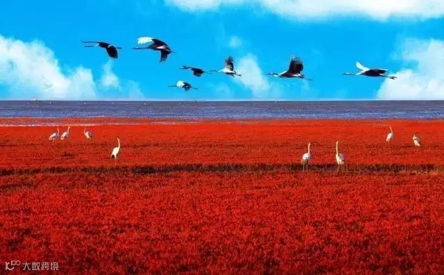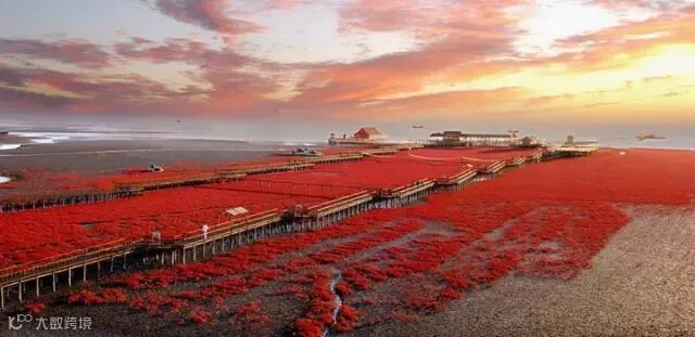 阳光明媚,空气清新,此时红海滩红艳似火,是观赏瑰丽奇景的最佳时间,酿造出一片片旺盛的生命力。