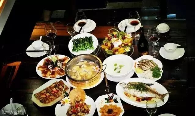 北江印象餐厅以古船木家具为主要的餐桌,尽显低调、沉稳的风格,北江河鲜、客家咸鸡、农家时蔬为主要菜式。。。
