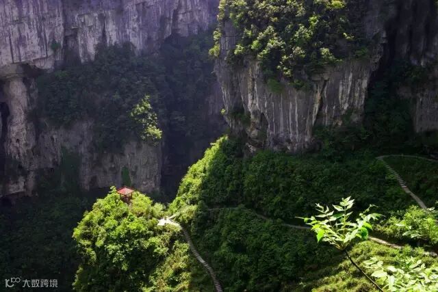拥有世界上最大的天生硚群落,景区内还可以亲身体验天坑内的唐朝古驿站,仿佛穿越时空隧道,进入一个群雄纷争、逐鹿中原、烽烟四起的远古年代。